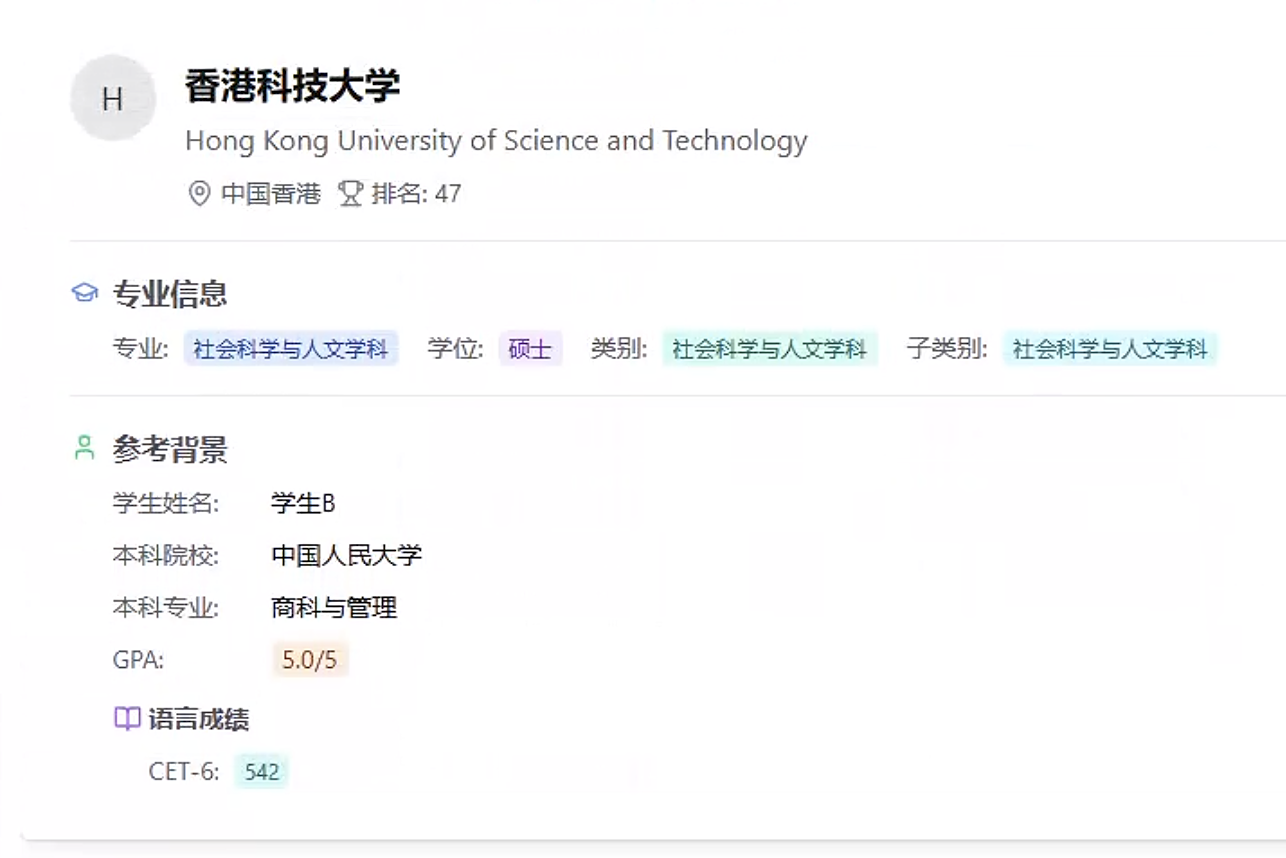 我均分不算特别拔尖,本来对港前三都不抱希望了。结果 ApplyPilot 的算法精准匹配到了港中文一个偏重我高分核心课的项目,文书也完美放大了我的量化背景,直接逆风翻盘。
