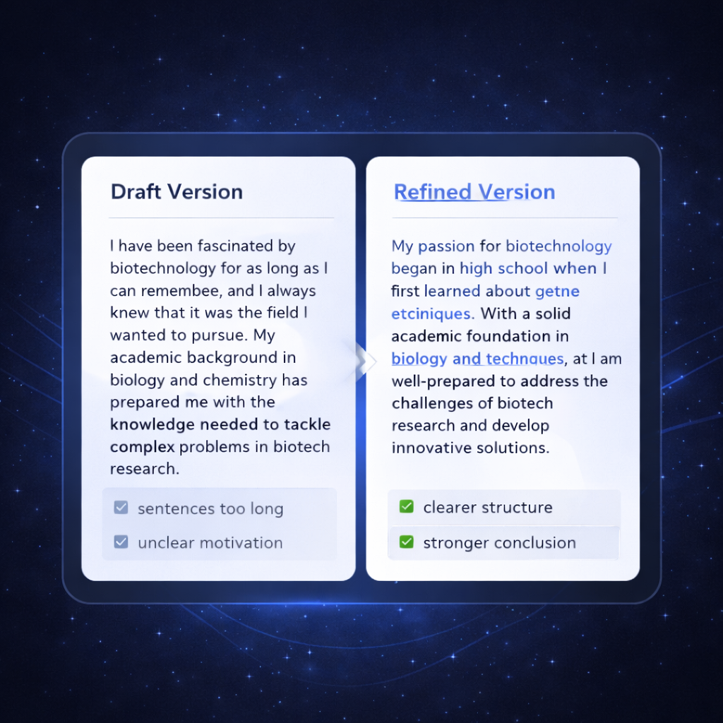 这种针对性的优化,使文书不再是“一篇通用版本”,而是与申请目标高度匹配的表达。